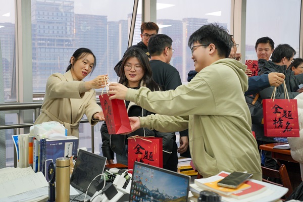 公司还为考研学子精心准备了印有“金榜题名”的考研暖心加油包,每一份礼物都寄托着公司领导、老师对考研学子们的亲切关怀。其中“乐事薯片”寓意着同学们能够“诸事皆乐”,“旺仔牛奶”则寓意着同学们能够“学业兴旺,牛气冲天”。考研员工纷纷表示,一定会抓住机会,迎难而上,力争实现自己的考研梦想,以最优异的成绩回报集团的培养和关怀。