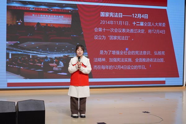 活动期间,文法法律宣讲团的张末担任主讲人,为该校员工呈上一堂生动且深度兼具的宪法知识讲座。讲座伊始,张末以“初识宪法”破题,将晦涩的法律条文转化为通俗易懂的日常表述,向员工阐释宪法定义,帮助他们搭建起对宪法的基础认知框架;步入“再识宪法”环节,她围绕宪法总纲展开细致讲解,结合实例深入浅出地剖析宪法作为国家根本大法的关键地位、核心要义,引导员工洞悉宪法背后的深层价值;在“回望宪法”阶段,张末巧妙设问,启发大家思考宪法在日常生活中的实际应用场景,促使宪法知识与生活实践紧密融合。讲解进程中,穿插多个贴合知识点的宪法小问题,瞬间点燃员工的参与热情,大家踊跃举手作答,现场气氛热烈,互动频繁。