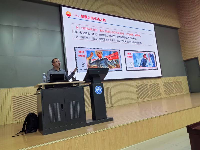 代炳涛首先从邮票中的石油元素这一角度入手,深入剖析了长输油气管道建设行业的发展现状与趋势。他详细阐述了我国在长输油气管道建设方面取得的巨大成就,从“西气东输”等工程中的技术创新到工程规模,再到其在国家能源战略布局中的重要意义,使同学们对这一关键行业有了全面且深入的认识,巧妙地将思政教育融入行业介绍之中。随后,他从石油精神、铁人精神,以及石油人对国家能源安全高度负责的使命感,使思政教育在实际行业中得以生动体现。他鼓励同学们要树立正确的价值观与事业观,将个人发展与国家能源事业紧密相连,在未来的学习工作中传承和发扬这些优秀品质。