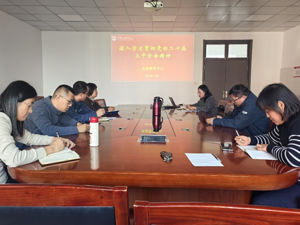 为全面深入学习领会党的二十届三中全会精神,扎实推进学习宣传贯彻工作,把全体党员群众的思想和行动统一到全会精神上来,12月5日下午,实验教学中心党支部全体党员在综合实验楼C433开展了关于《深入学习贯彻党的二十届三中全会精神,凝心聚力推动改革行稳致远》的主题学习。
