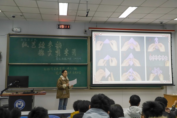 活动开始,由剪纸爱好者协会负责人王牧晗为参与活动的员工介绍剪纸的历史和文化背景,并教授了本次剪纸体验互动的作品制作流程,即使用提供的彩纸和剪刀、刻刀等工具,制作与大雪节气十分相称的“纸雪花”。完成雪花作品制作后,员工依次领取白色卡纸,挑选不同色彩的彩笔来绘制大雪、冬日主题的画作,留作纪念。活动过程中,员工利用手头材料,两人一组,积极协作,纷纷制作出了属于自己的剪纸作品,不少员工在卡纸上完成了属于自己的画作。在活动最后,参与活动的员工们互相展示自己的作品,大家一起合影留念。活动结束后,员工会成员王昱皓表示:“本次活动选在大雪这个节气,形式为传统的剪纸艺术,具有浓厚的文化气息,旨在让同学们在繁杂的学习生活中收获到一份平静。”