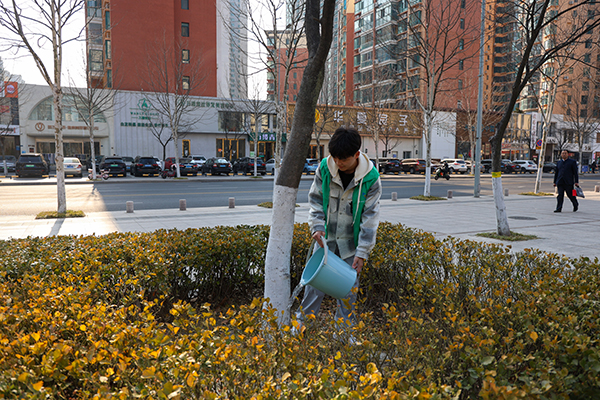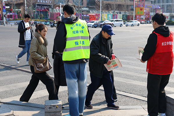 活动中,30余名青年志愿者兵分两路开展服务。在井冈山路和珠江路的交汇处,志愿者们分工协作,为50余棵行道树进行科学养护。他们手持水桶仔细浇灌根系,为树木补充春季生长所需水分;为树干绑扎防虫胶带,形成物理防护屏障;同时清理树坑内的杂物,改善植物生长环境。过程中,同学们还向社区居民普及春季树木养护知识,讲解病虫害防治要点,将专业知识转化为服务实践。另一组志愿者分散开展垃圾分类宣传。他们结合生活实例,为社区居民详细讲解可回收物、有害垃圾、厨余垃圾和其他垃圾的分类标准,发放宣传手册200余份。