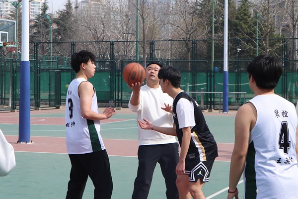 2023级辅导员秦政表示春日的温度就同在场的同学一样温暖又有力量,希望每一位同学都能在比赛中闪耀出属于自己的光芒,同时也强调了篮球比赛的安全性,提醒各篮球队成员不论什么时候都要将安全放到第一位,为后续的比赛安全筑牢了思想防线,随后裁判员代表王奕栋进行宣誓,表示各裁判将会公平公正公开的评判每一场比赛,运动员代表王琳保证会拼尽全力,赛出水平赛出风格。最后,各级辅导员分别为今天的各场比赛开球。
