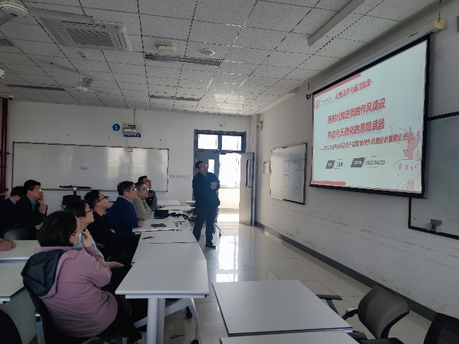 王胜军老师主讲题为“新时代推进党的作风建设常态化长效化的思想武器”微党课