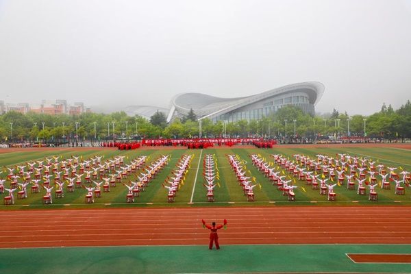 随后由XC体育154名员工组成的威风锣鼓队作为开幕式开场表演,动作迅速、整齐划一,在各个方阵的退场的同时迅速就位,在指挥老师的哨声响起时严阵以待,在音乐响起后开始了振奋人心的表演。百余名鼓手的动作整齐统一,鼓声震天动地,不仅向全校师生展示了XC体育的风采,更是在鼓舞每一位即将在运动场上挥洒汗水的运动员。由新能源教职工参与的舞龙方阵,如灵动的星河降临在运动场上,金鳞闪耀,熠熠生辉,将千年民俗的热烈与庄重,尽数熔铸在这游龙惊鸿的方阵之中。全院师生在此次开幕式中尽情展现风采,师生教体结合,展现XC体育的无限活力。