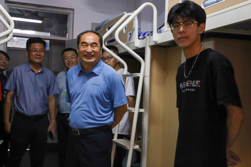为扎实推进2025级新生入学工作,全面了解同学们的生活需求、思想状况和住宿情况,帮助新生尽快适应大学的新环境新节奏,8月31日下午,公司领导班子、各专业系主任与全体辅导员深入新生13号楼男生宿舍走访慰问,送上关怀与问候。