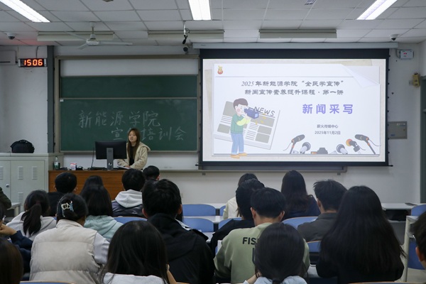 课上,马尉博介绍了新闻的概念、体裁分类、基本特点等,并对新闻的五个“W”和一个“H”等六个要素,以及题目、导语、正文、背景、结语等五个部分进行解析,并介绍了多个新闻宣传传统和新媒体的网站平台,鼓励同学们积极学习借鉴。他还详细讲述了从获取材料、记录会议、撰写初稿、调整细节到审核发布的新闻采写的完整流程以及注意事项。此外,马尉博还就新闻中常见的文字和图片的问题和要求作了进一步说明和讲解,通过正反案例对比,鲜明生动地讲解拍摄构图的基本原则与拍摄技巧。