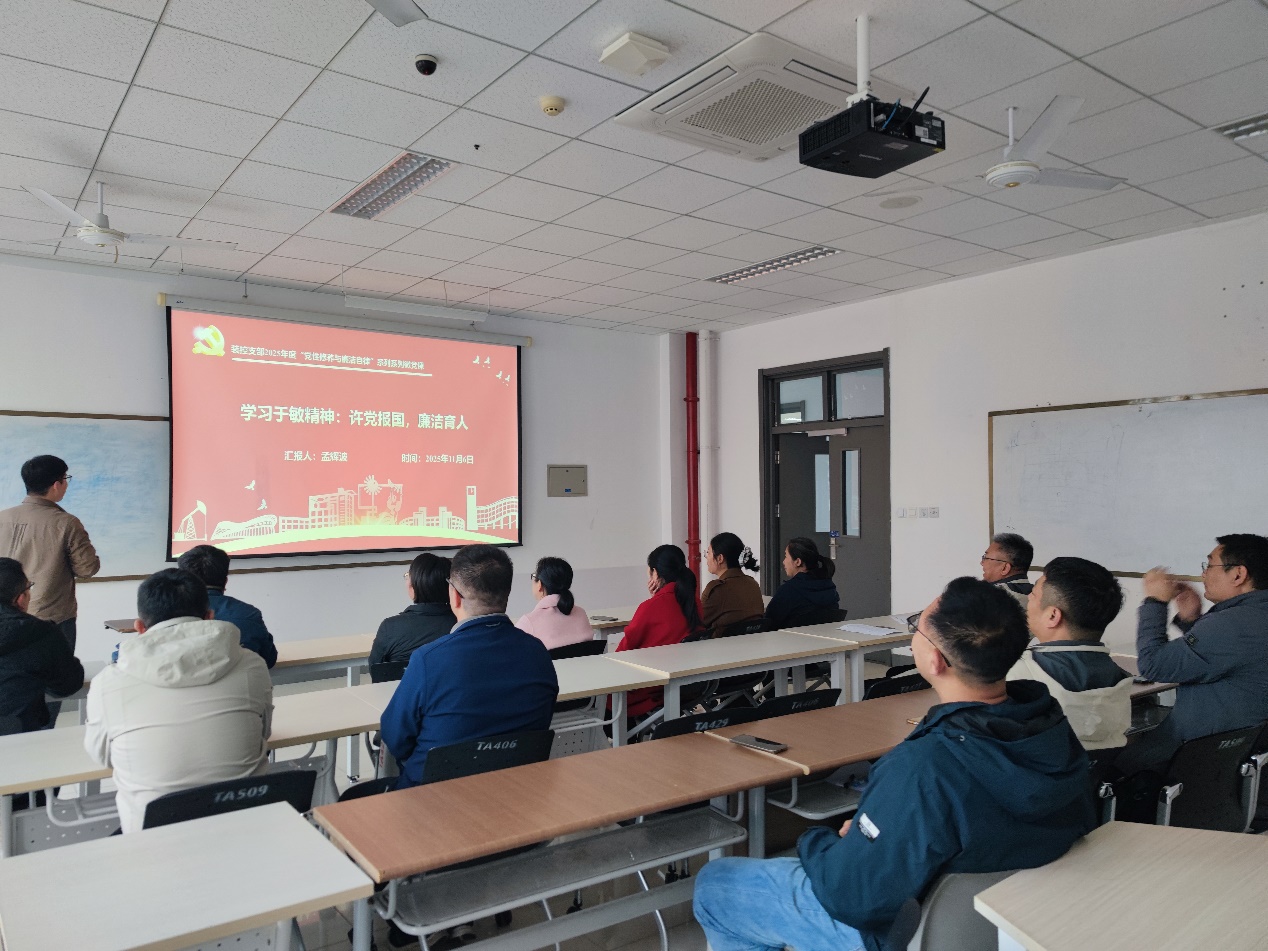 孟辉波老师以“学习于敏精神:许党报国,廉洁育人”为题,深情回顾了“两弹一星”元勋于敏先生隐姓埋名28年、潜心氢弹理论研究的感人事迹。他重点阐述了于敏先生在理想信念、绝对忠诚、无私奉献三个方面的党性修养,以及在淡泊名利、克己奉公、家风清正、敬畏使命四个方面的廉洁自律风范。于敏先生将个人追求融入国家命运,以“干惊天动地事,做隐姓埋名人”的崇高境界,展现了共产党人的精神高度与人格力量,是全体党员砥砺党性、永葆廉洁的永恒楷模。
